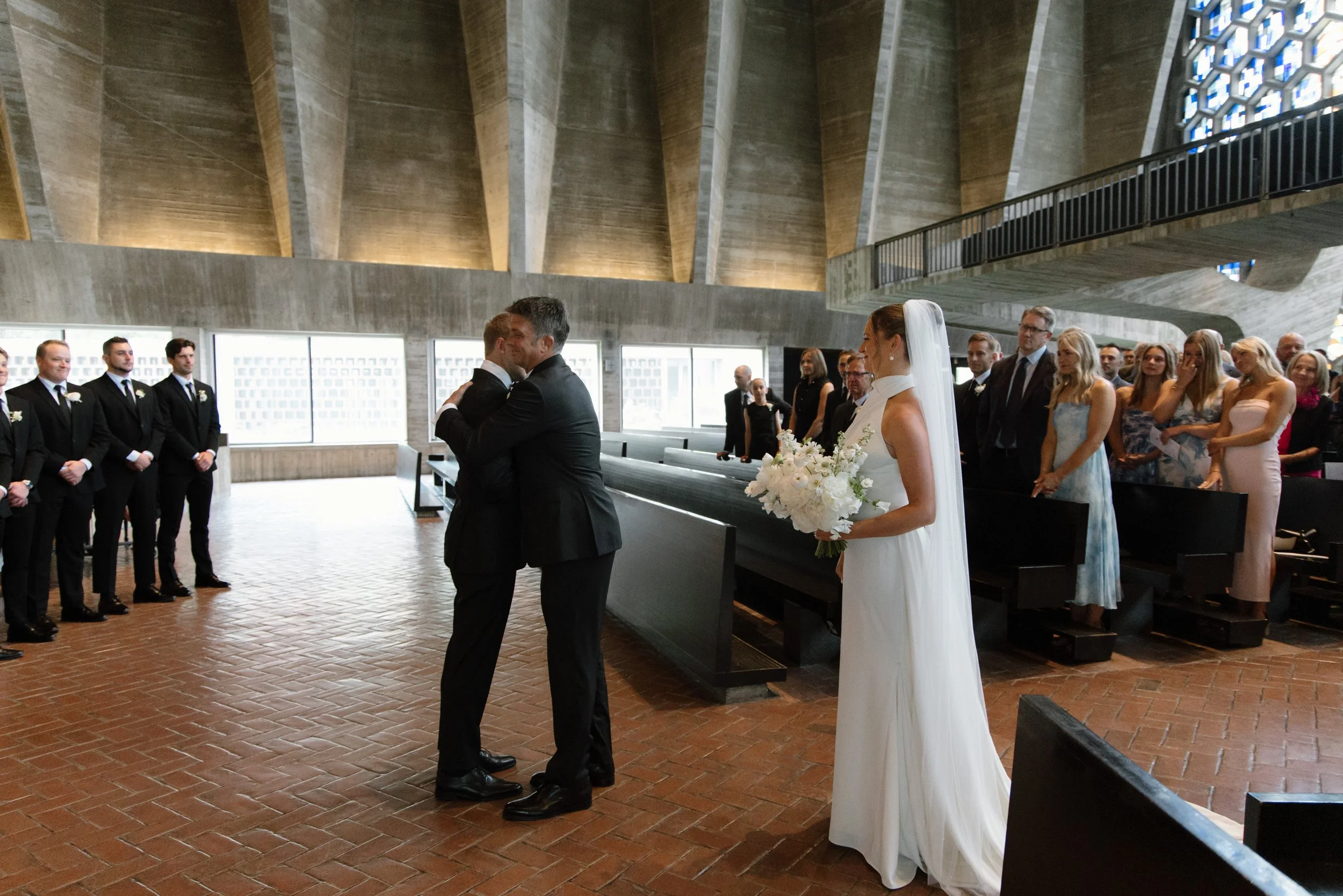 On a gloomy day at Saint John’s Abbey, surrounded by soaring architecture and centuries of history, Gianni & Zach promised forever. The light was muted, the sky unsure, but inside the abbey everything felt steady and certain. Love echoed through the space, carried by meaningful vows and the presence of a big, joyful wedding party - friends and family who showed up with full hearts and happy tears.